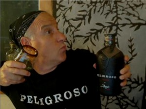 OK, everybody. Got your HAZMAT suits? Check. Got your Flame-Retardant goggles? Check. Got your SNAKEBITE kit? I said, GOT YOUR SNAKEBITE KIT ??!? Well GET ONE! Because this episode’s featured tequila is “Peligroso” — which means ‘dangerous’ in Spanish, and at 84-proof, this is one tequila you should not turn your back on!